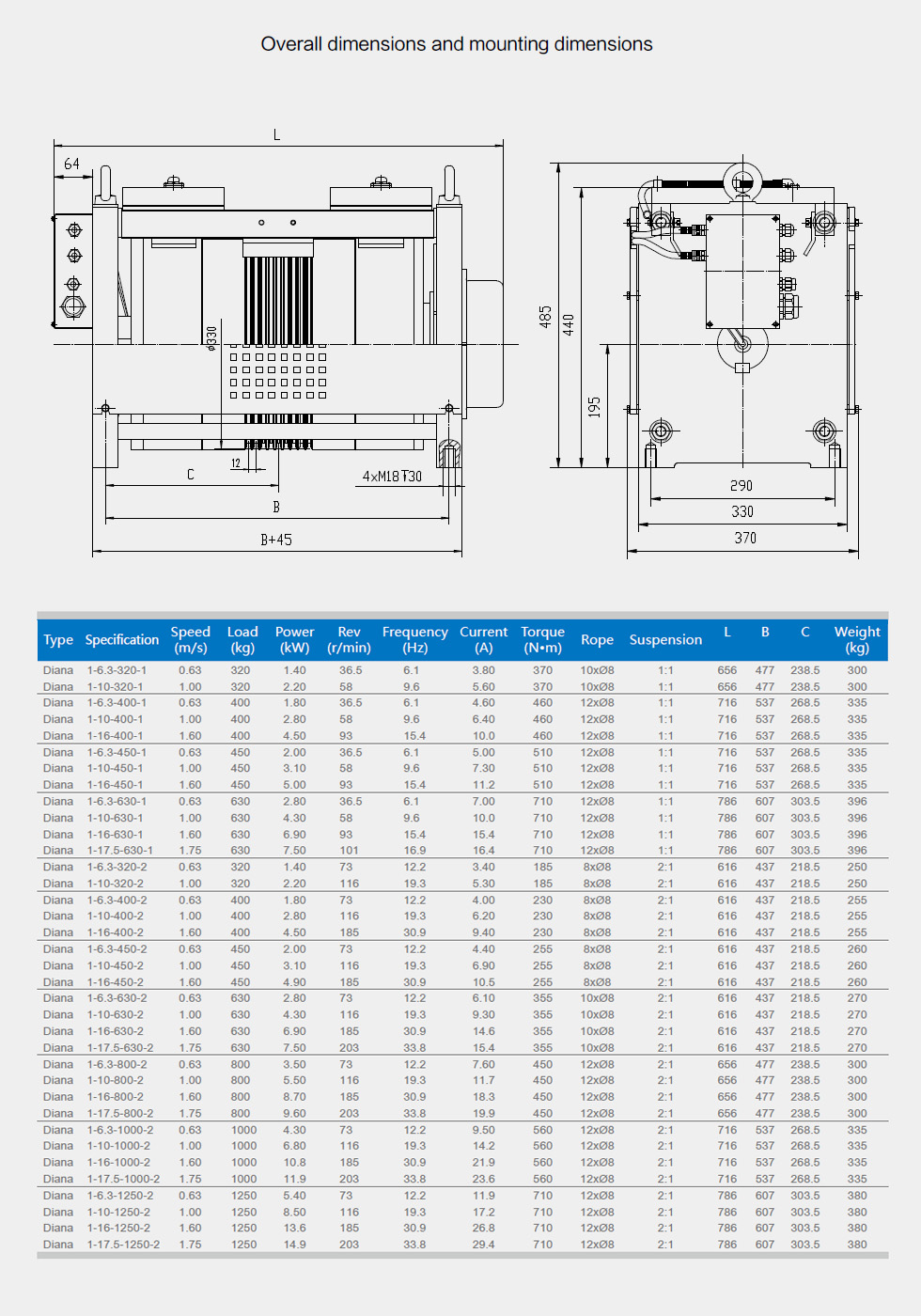 Rated capacity: 320、400、450、630、800、1000、1250kg