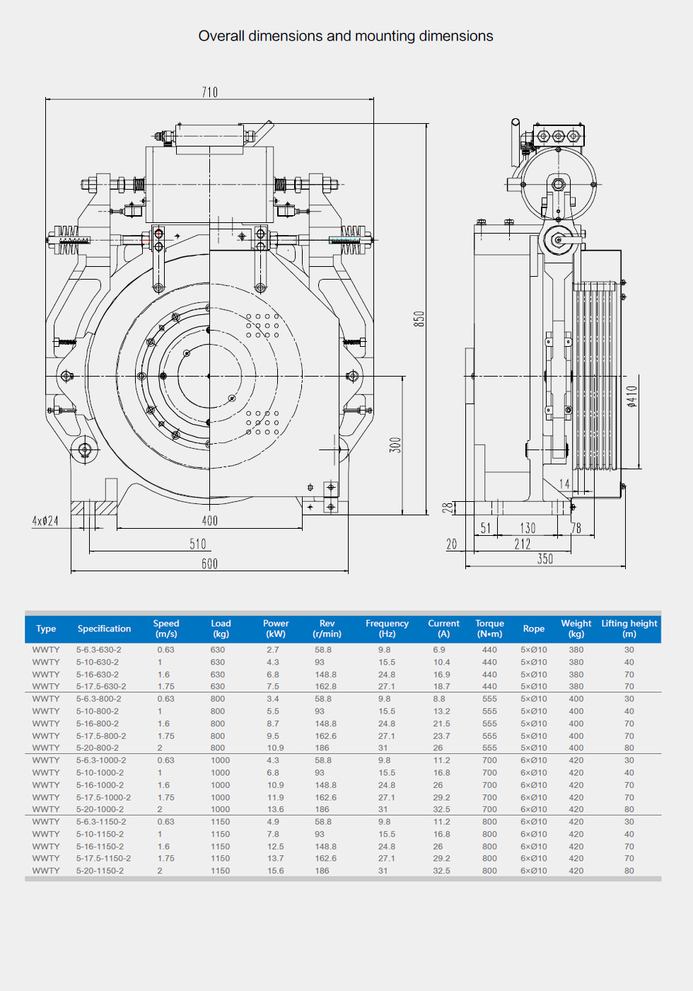 Rated elevator speed: 0.63、1、1.6、1.75m/s