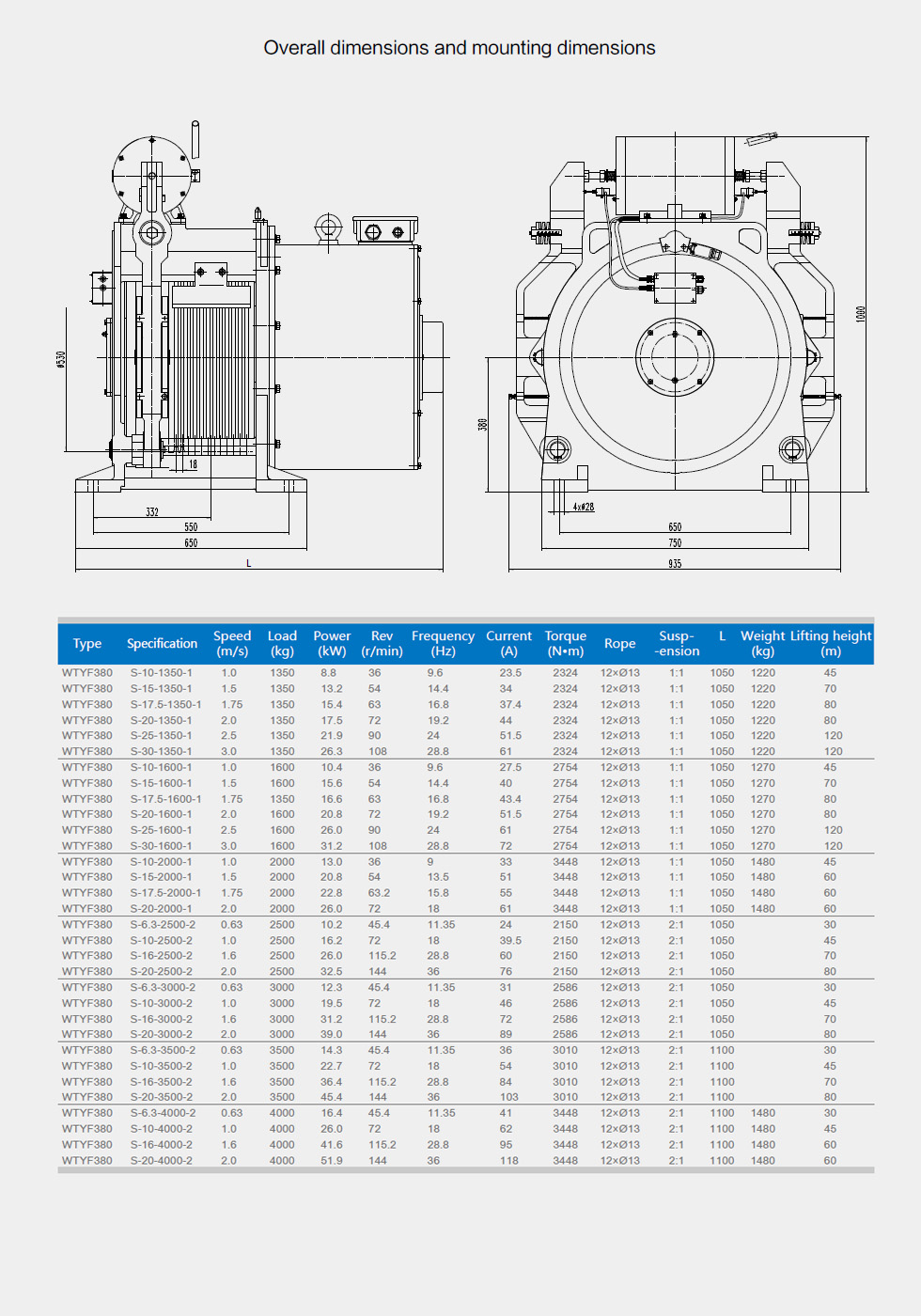 Rated capacity: 1350~4000kg