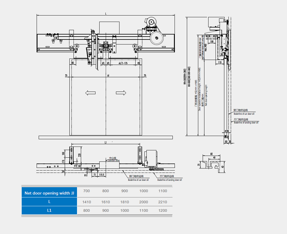 Door operator mounting: mounted on car top